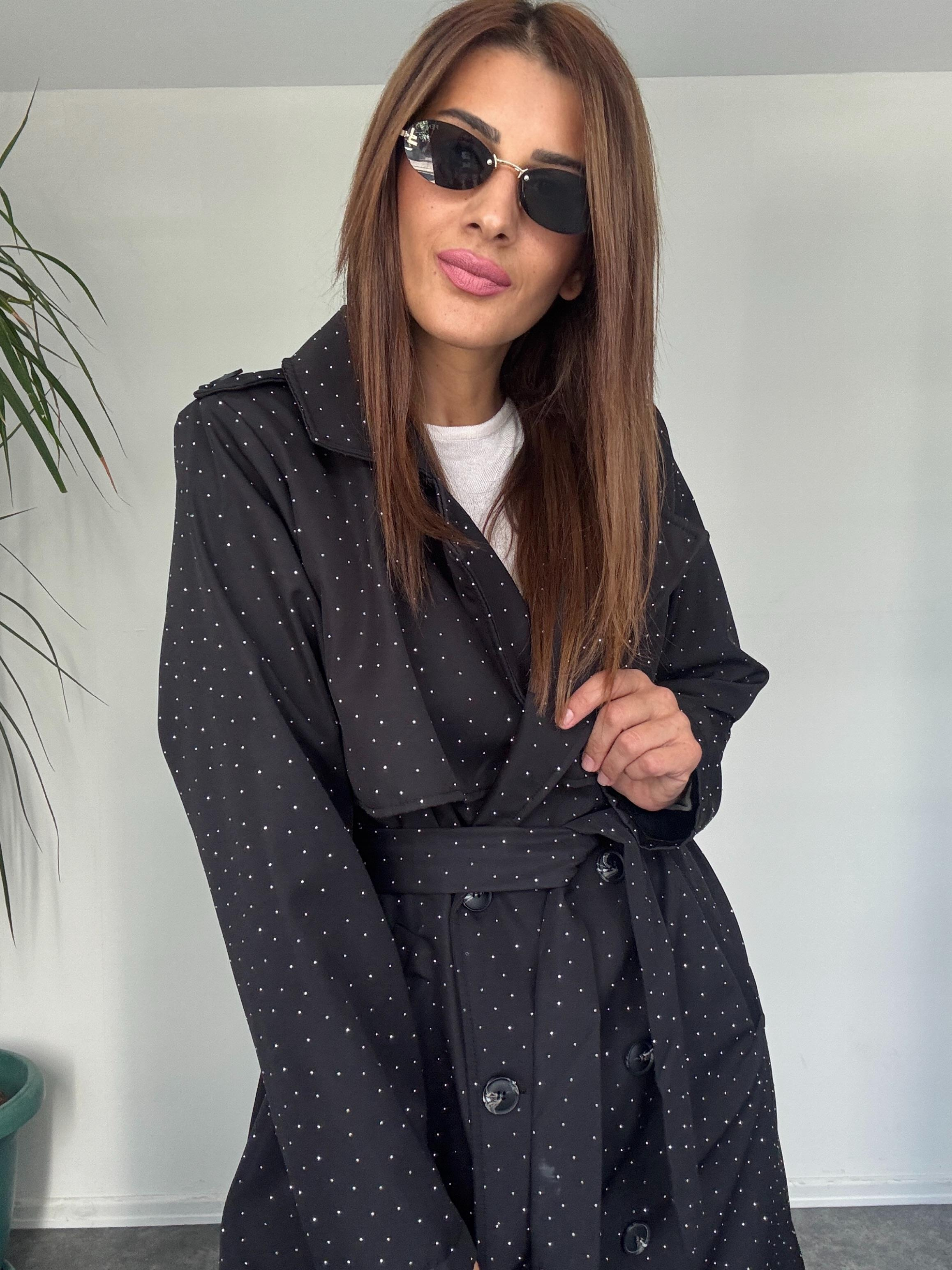 LYKİA TAŞLI TRENÇKOT SİYAH