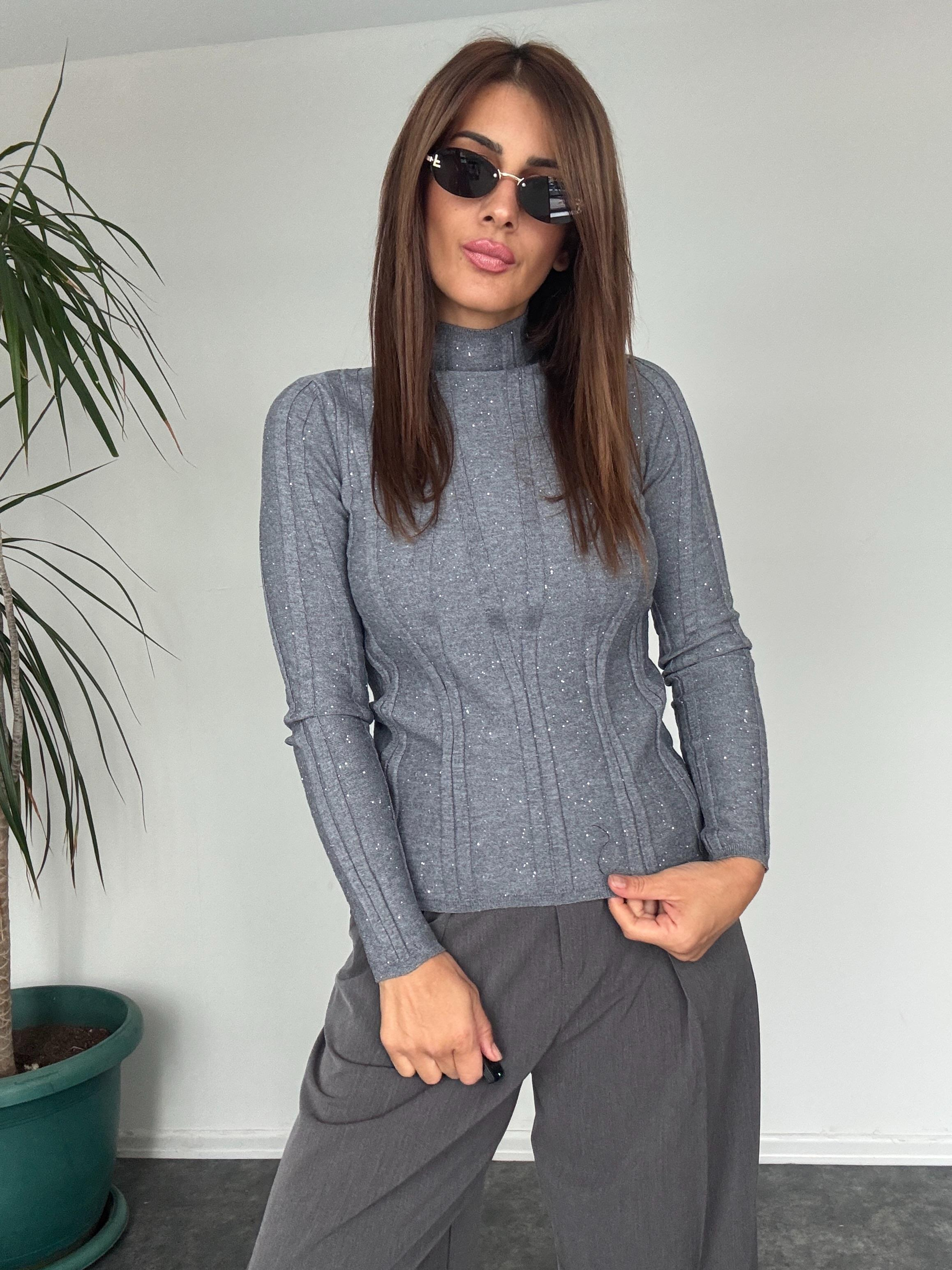 ZORA DİK YAKA PULLU TRİKO GRİ